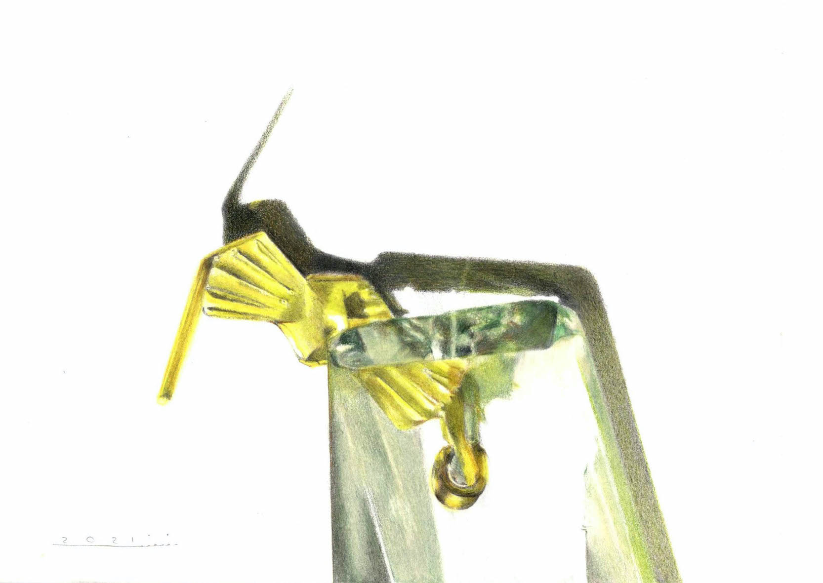 She paints familiar subjects that have often become ordinary and forgotten, trying to explore their inner essence. The predominant technique she utilizes in her works is colored pencil, which, like her subjects, is a tangible and familiar tool.